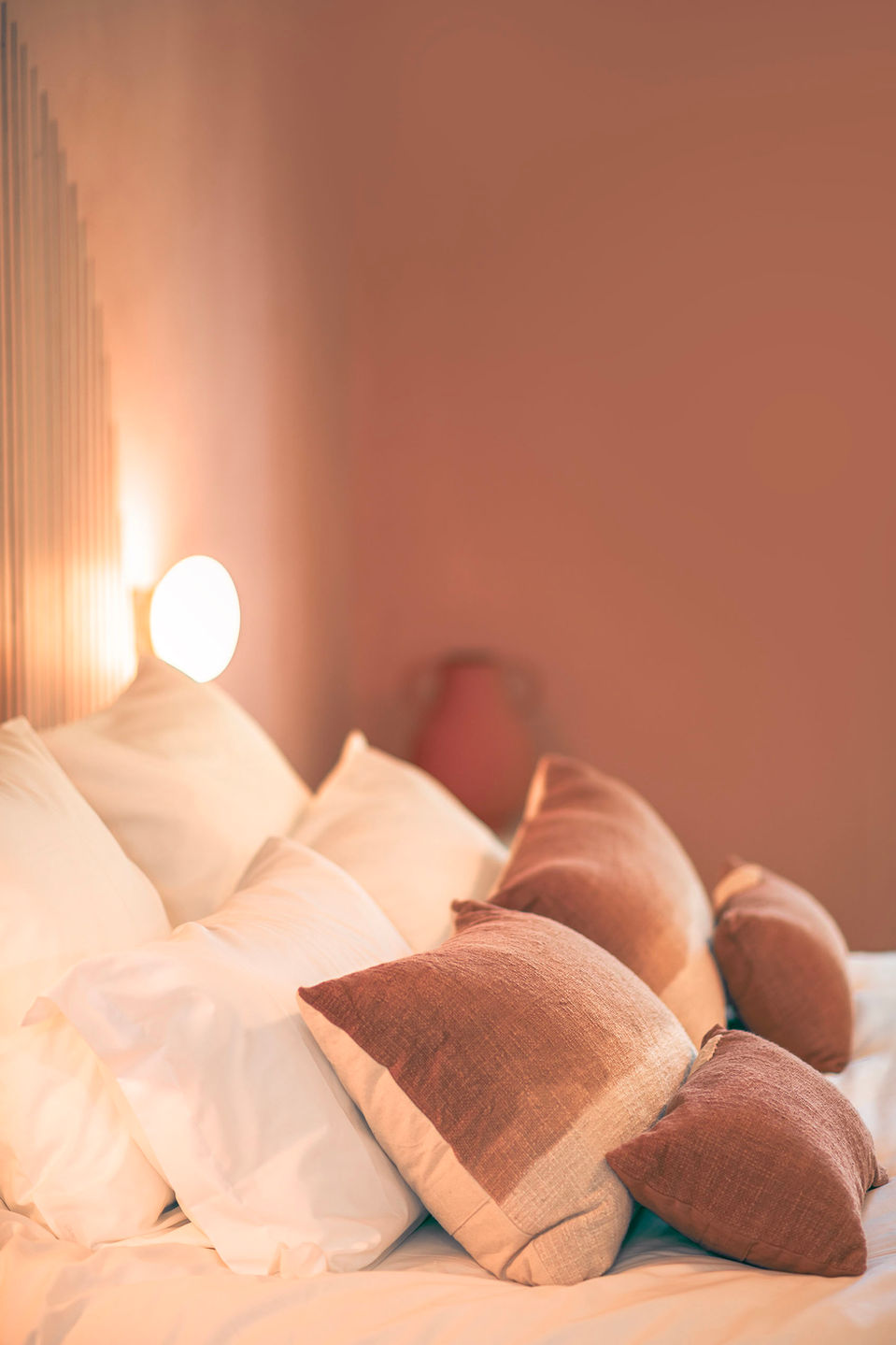 La suite est située au 1er palier et profite d’une vue imprenable sur le centre du village et l'étang, la suite possède une belle terrasse plongeante sur l'étang.L’univers est romantique et lumineux.